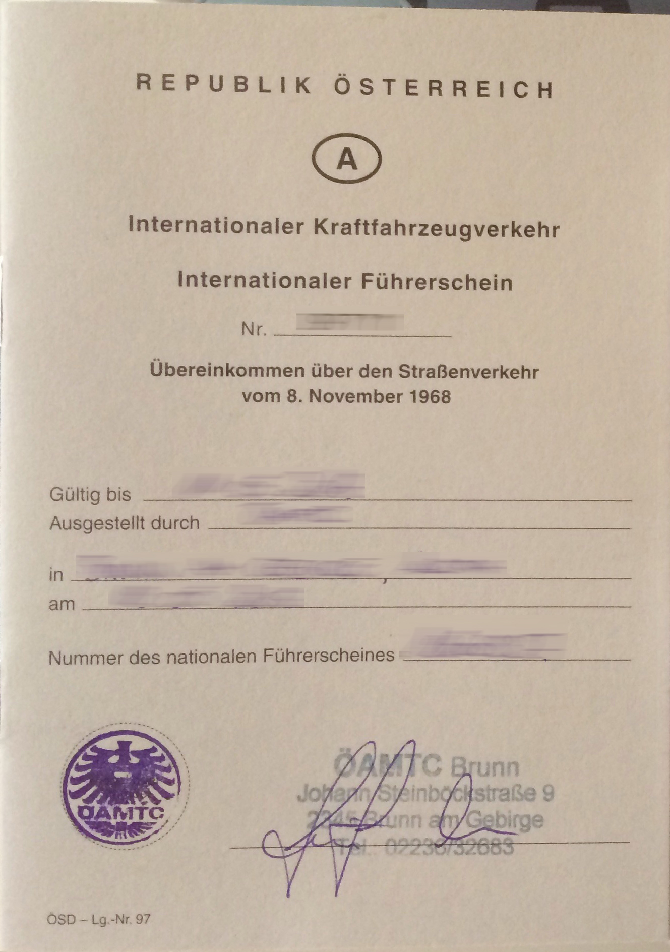 internationaler Führerschein Abkommen 1968
