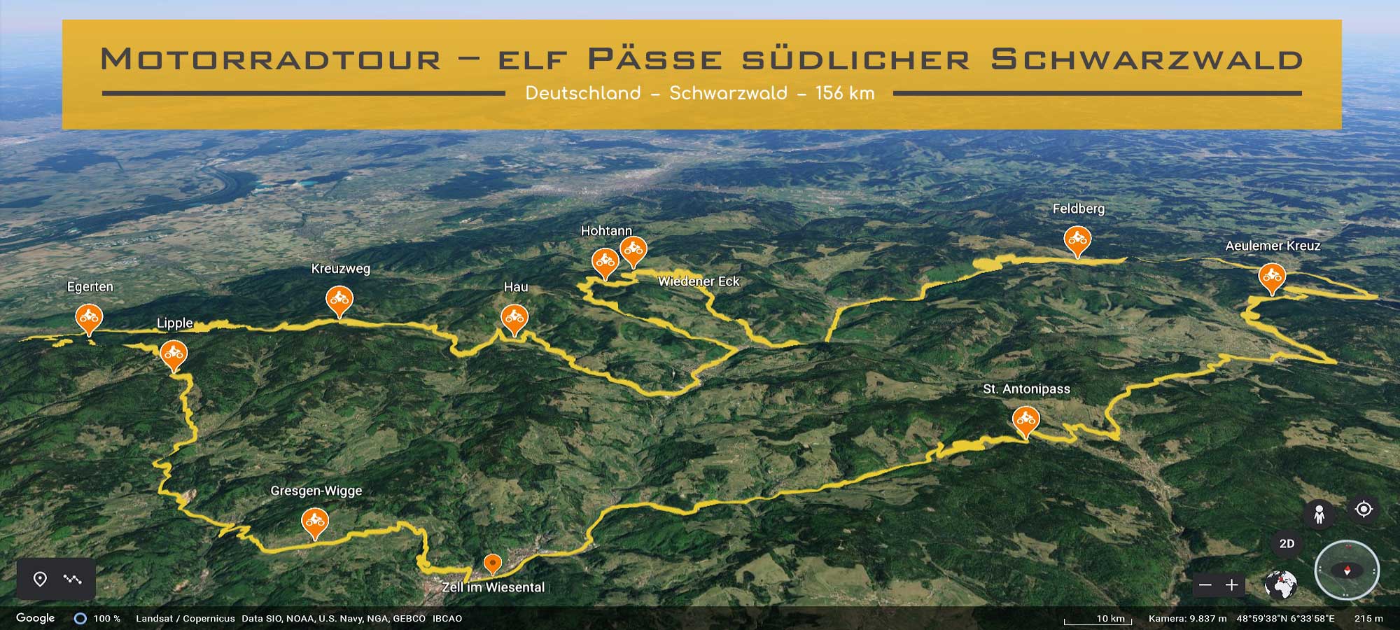 Eine tolle Motorradtour, die Dir auf 156 Kilometer die Schönheiten des Südschwarzwald zeigt und Dich über elf Pässe führt.